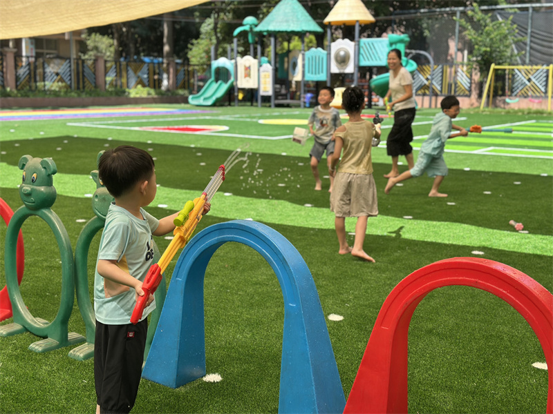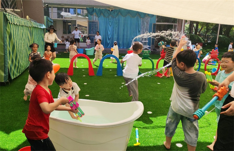 水枪大战、创意建构、“南水北调”……幼儿园里上演了各种各样的玩水方式。孩子们在游戏中发挥巧思,全身心投入,尽情释放自己的能量。