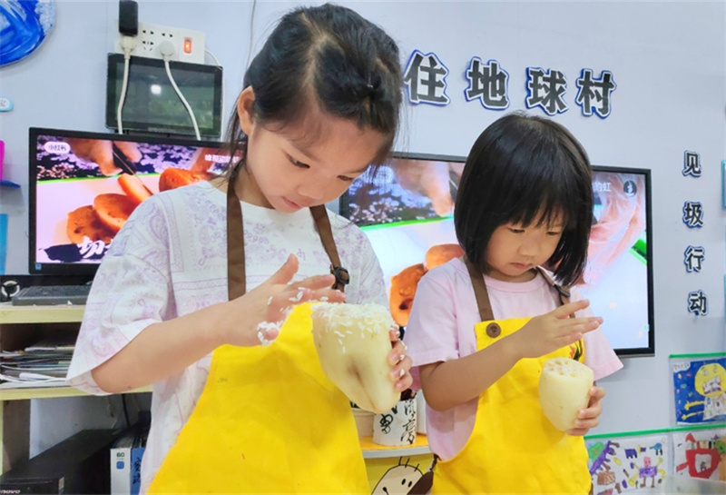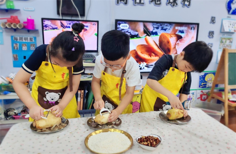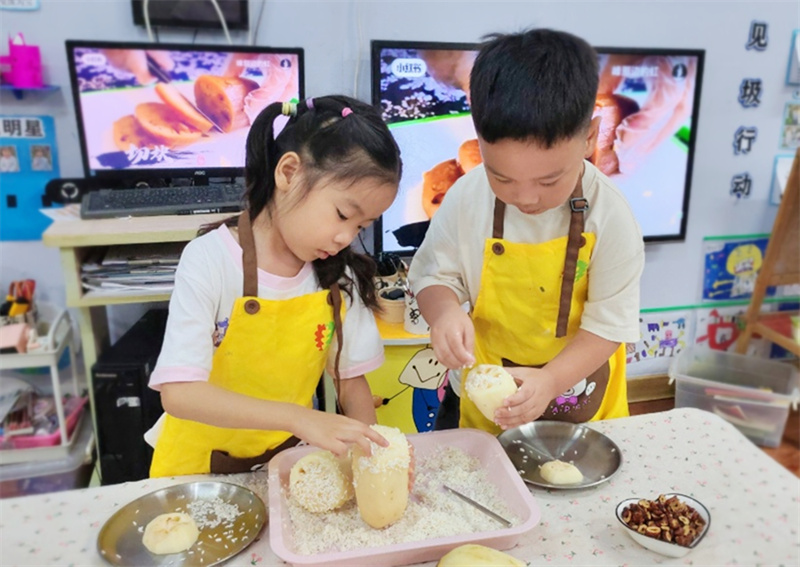 “藕断丝连”不只是成语,而是孩子们亲手验证的现象。塞入糯米、浇上红糖,蒸熟的莲藕让味蕾记住夏天的味道,更让传统文化在舌尖上延续。
