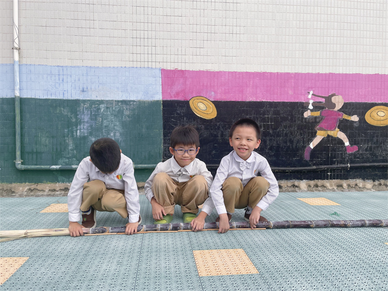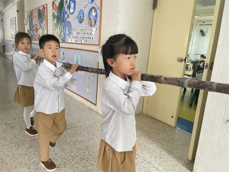 孩子们小心翼翼地在竹签上,