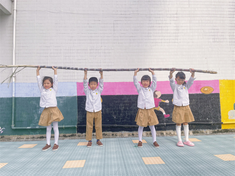 好奇的孩子们围在甘蔗旁,