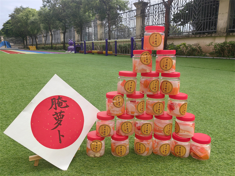 再亲手将萝卜装入密封罐,