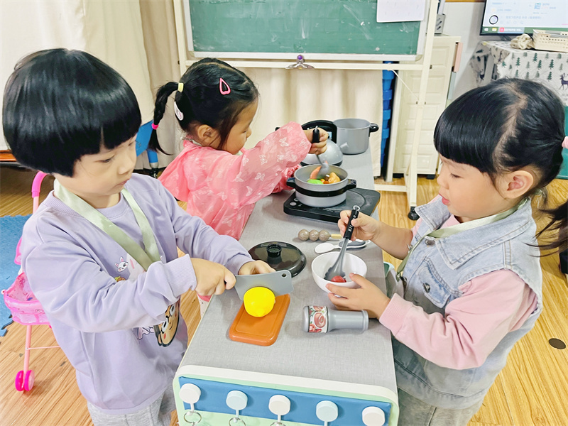 角色扮演区,孩子们一会是“爸爸妈妈”,