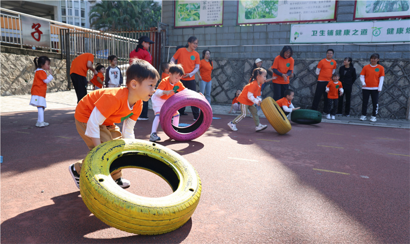宝贝们在推动轮胎前进的过程中,