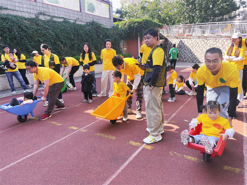 “亲子小推车”、“两人三足”游戏