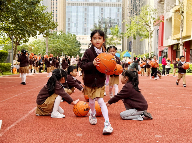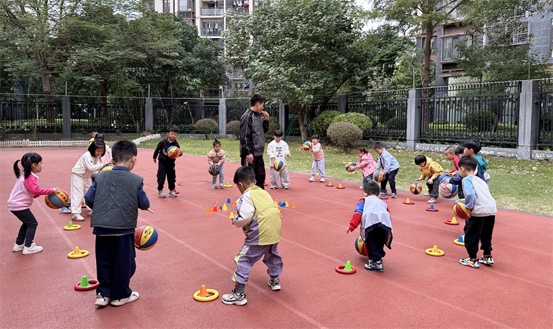 篮球课上,宝贝们在移动身体的同时