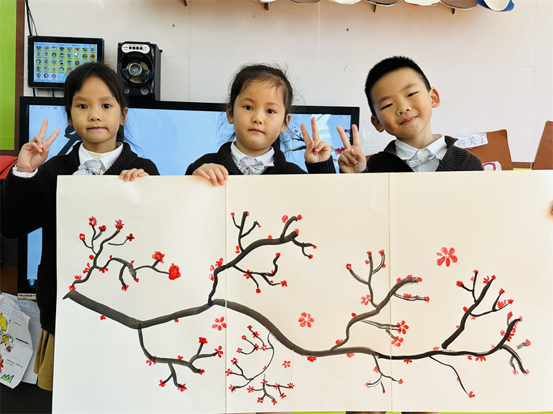 一株株红梅“绽放”,立体生动,
