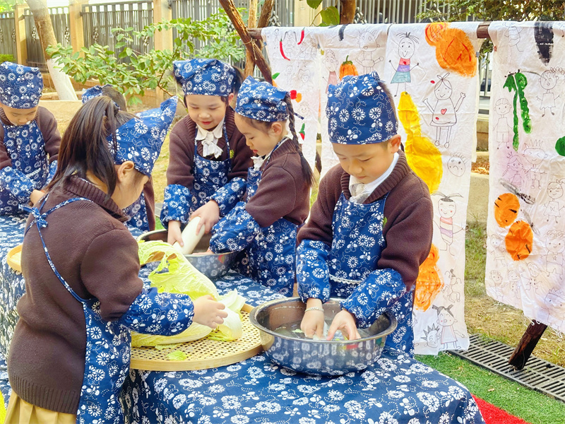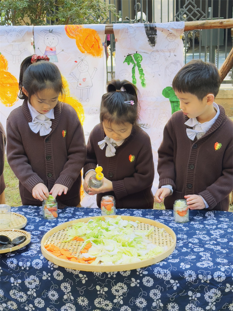 孩子们观察着食材颜色的变化,