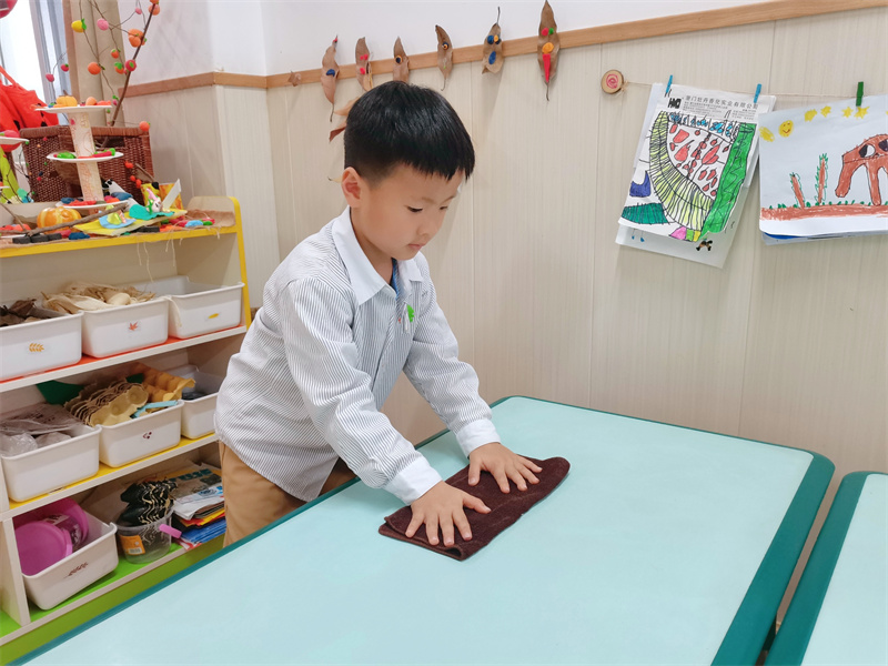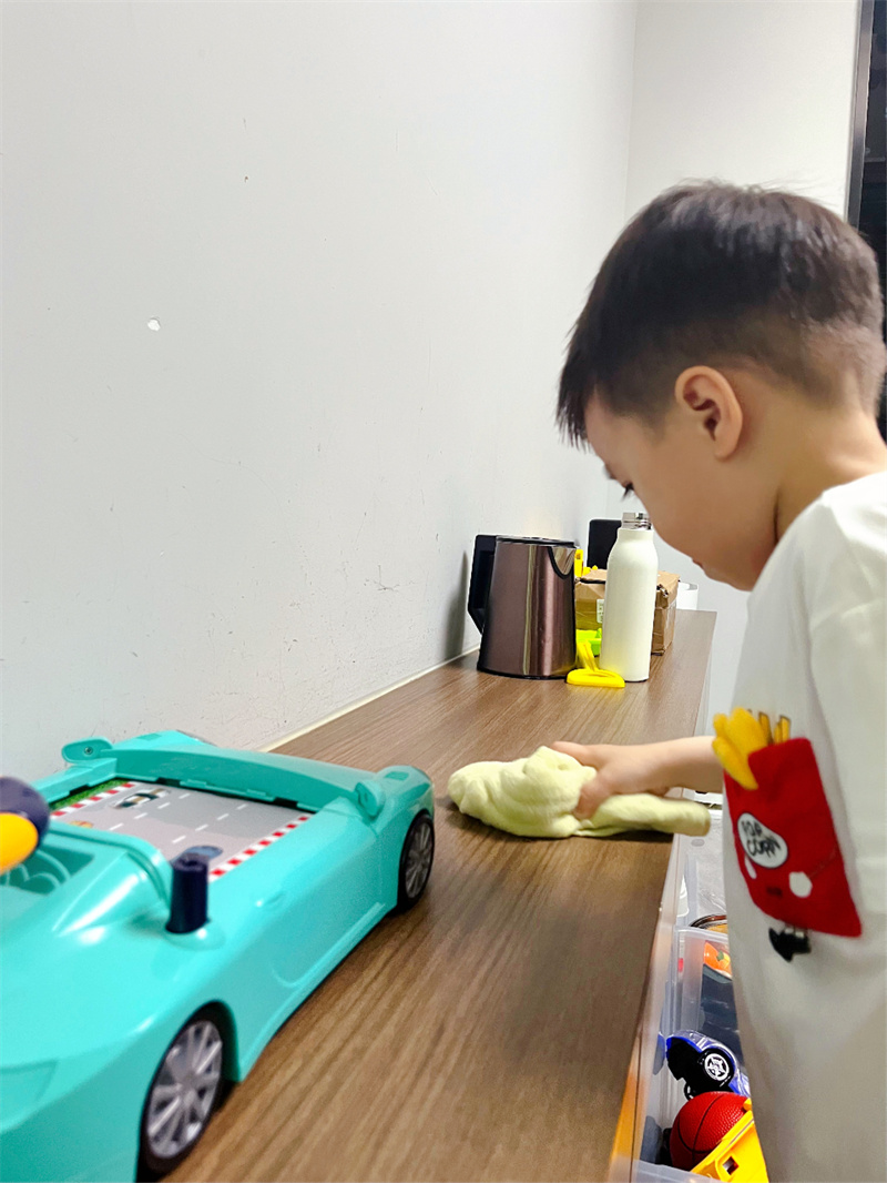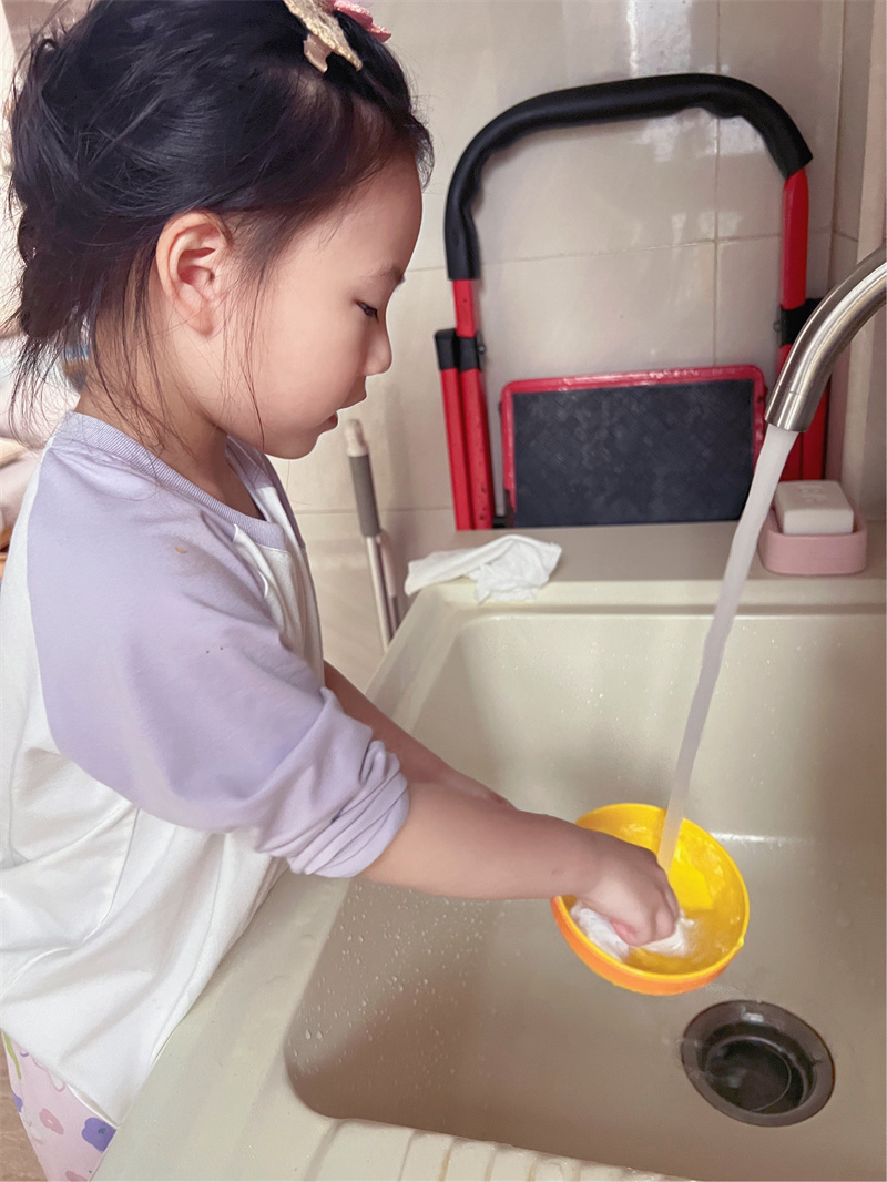 当孩子第一次自己倒牛奶不小心洒满桌面,第一次穿衣服把前后颠倒……请克制住那句“我来”,转而关注并鼓励孩子在自理过程中的努力:“我看到你今天自己倒牛奶了,这个动作越来越稳了,你真棒!” 家长的耐心等待、学会接受孩子自理行为时“不完美”结果,是孩子能成长独立的底气。
