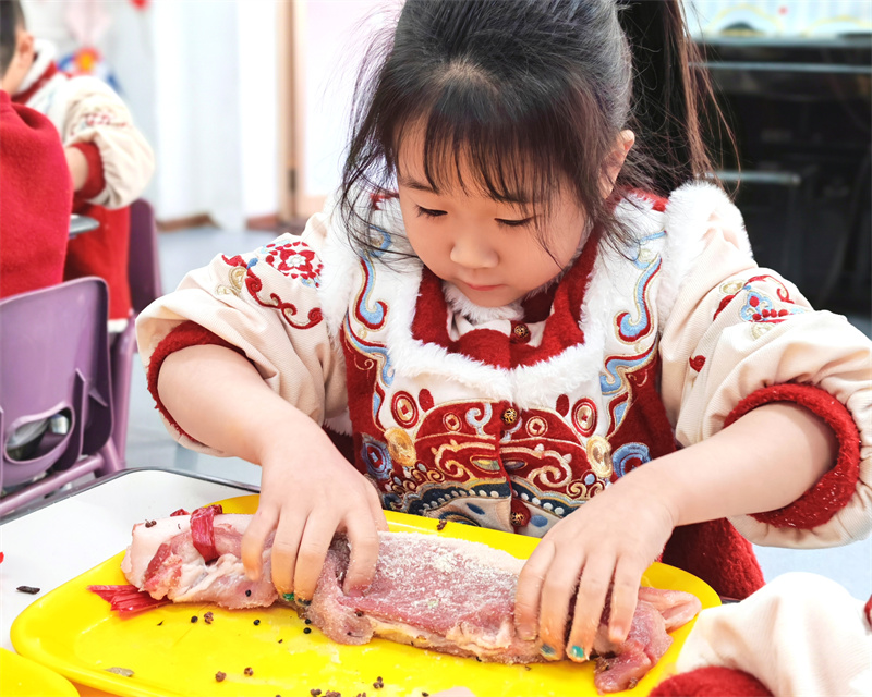 参与年夜饭的食材准备:择菜、腌肉、包小饺子……等等,饭前帮家人摆好碗筷,体验劳动的快乐~