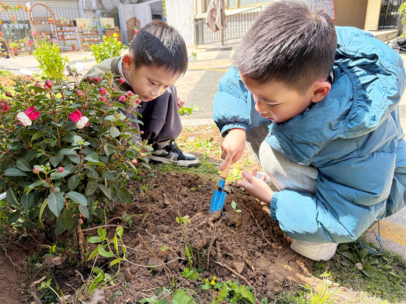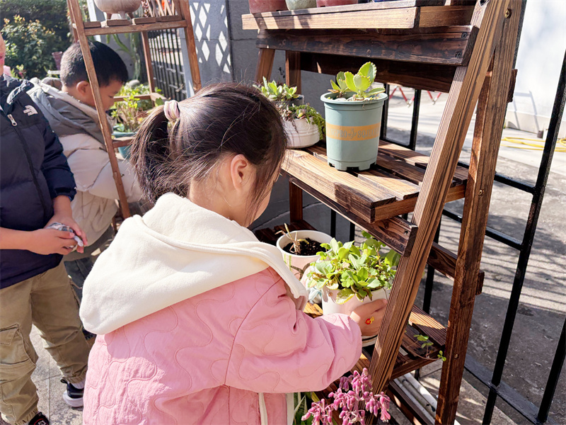 园内植物角也被孩子们关照着。
