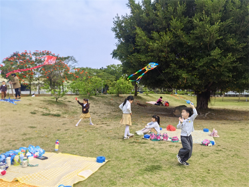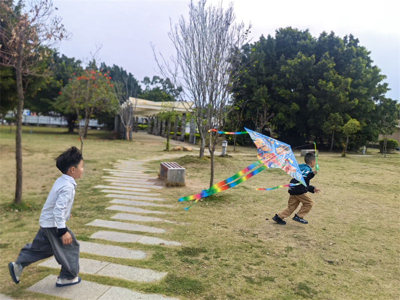 “慢慢跑,轻轻拉,风筝马上就飞起来啦!”