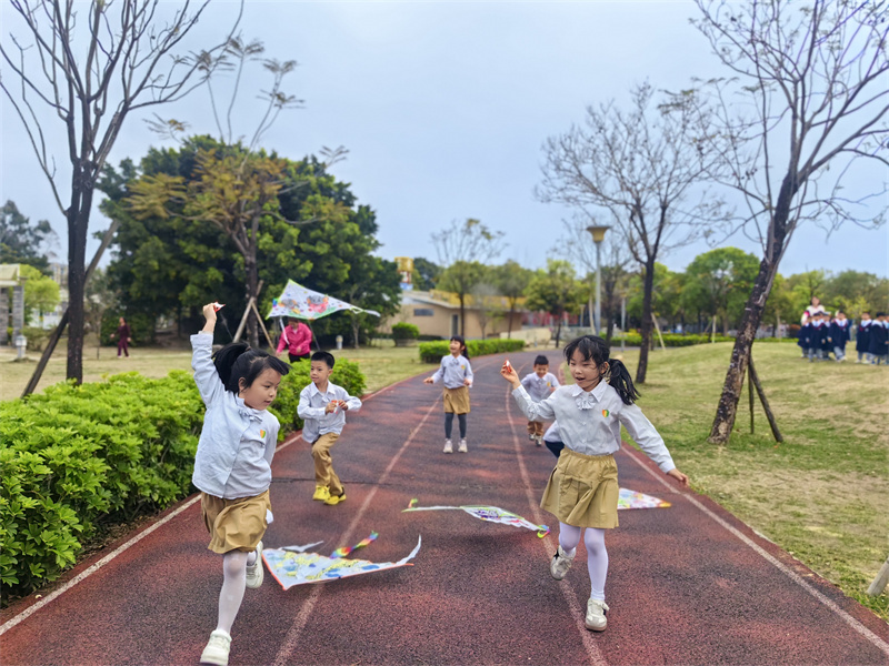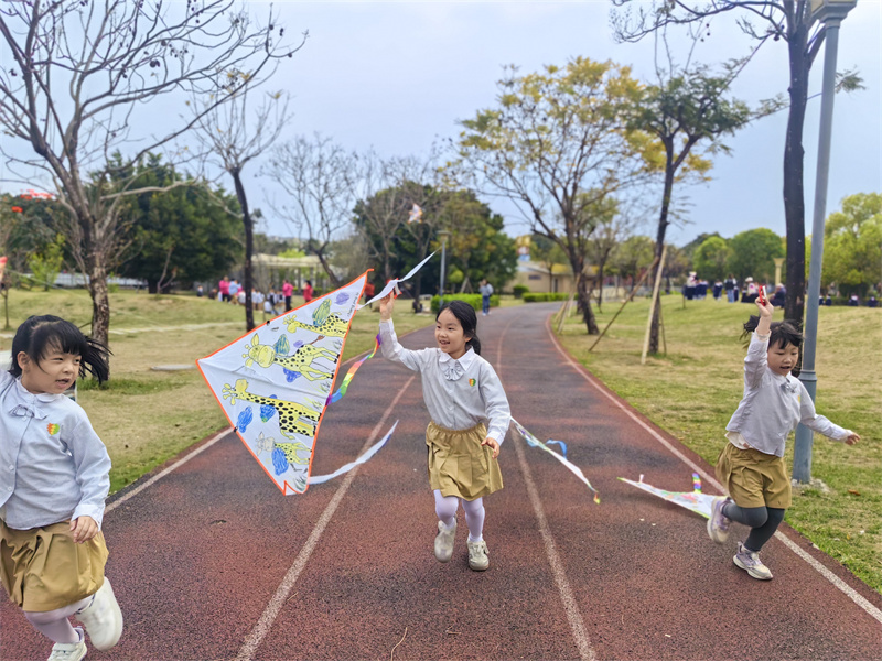 孩子们握线、奔跑、放线,