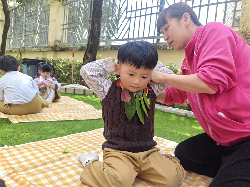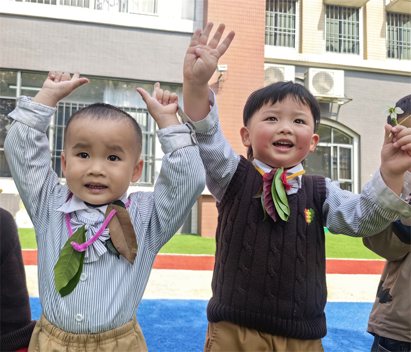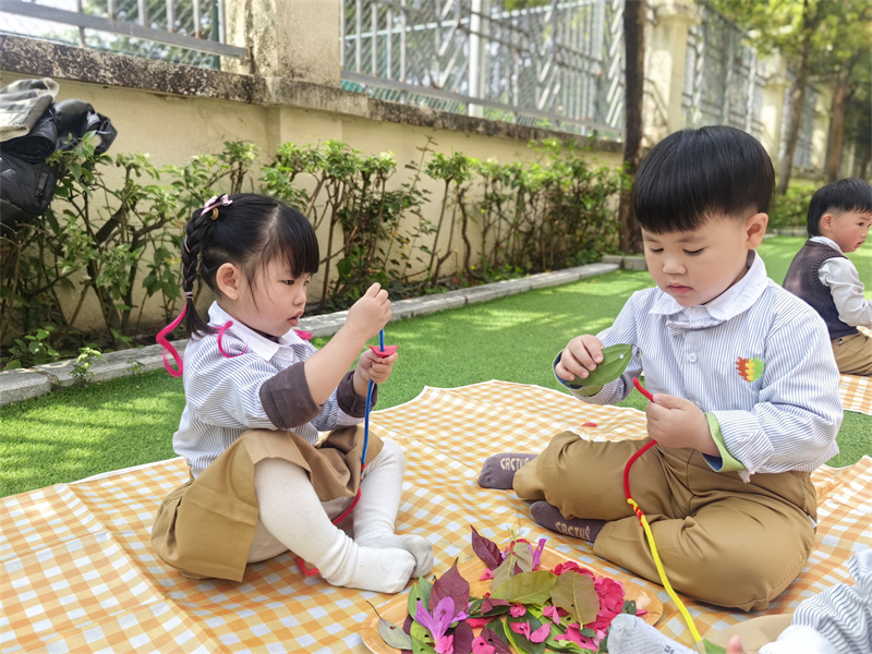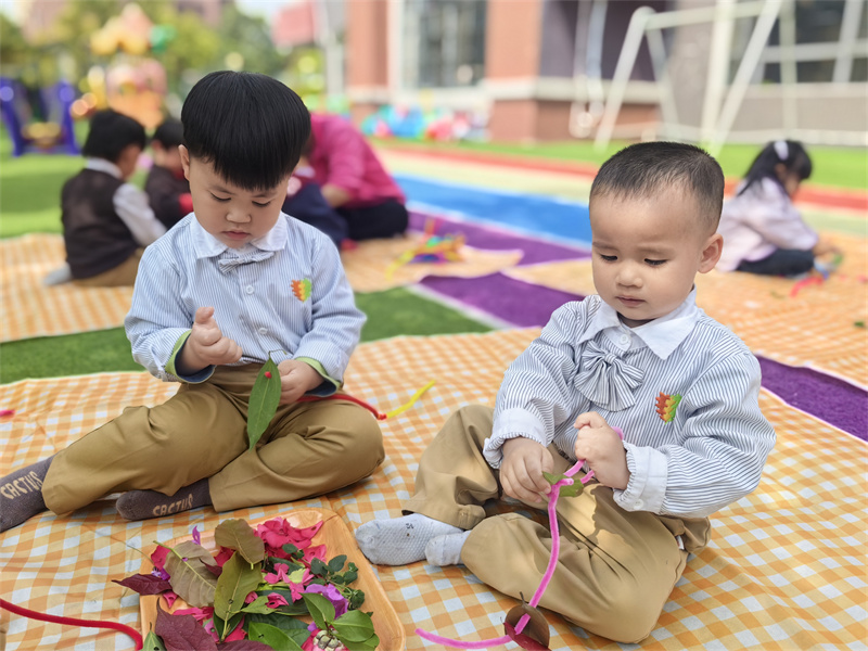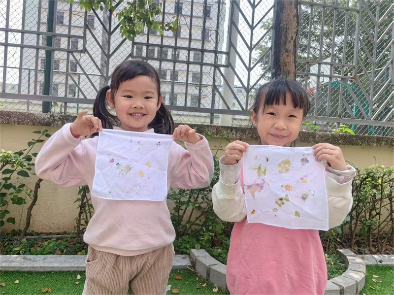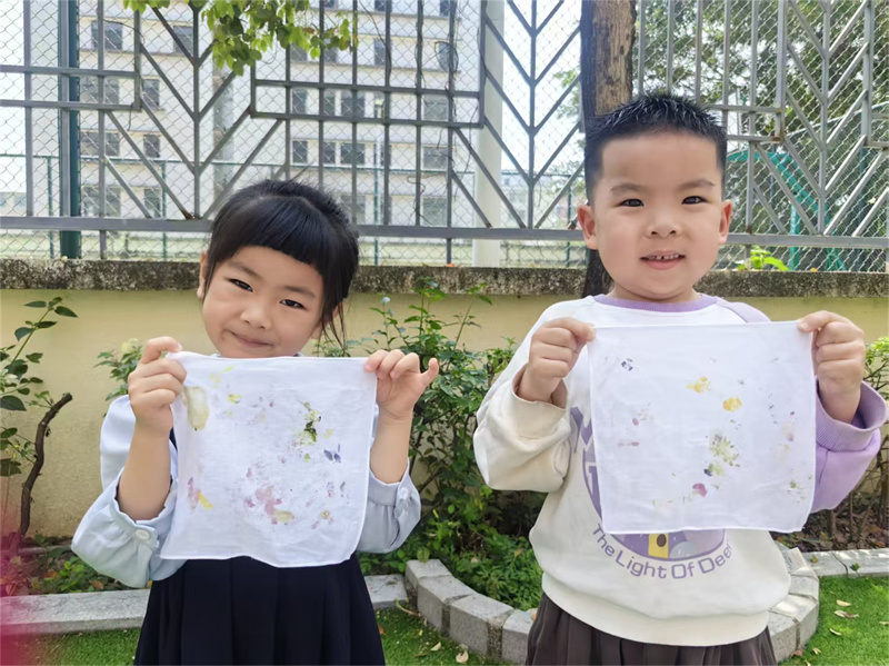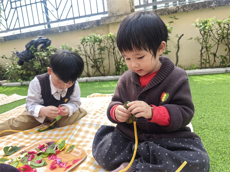 孩子们以花叶为材,