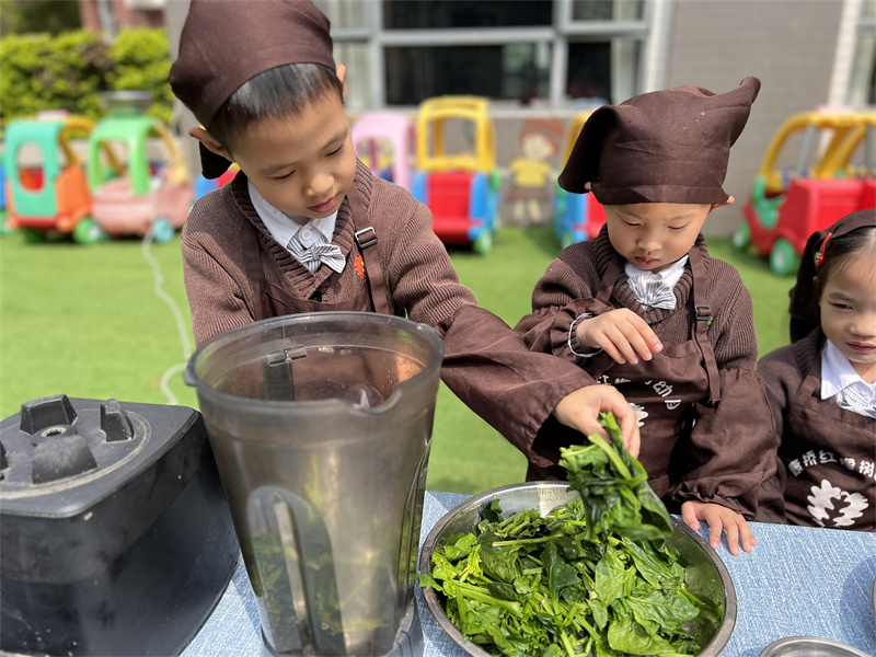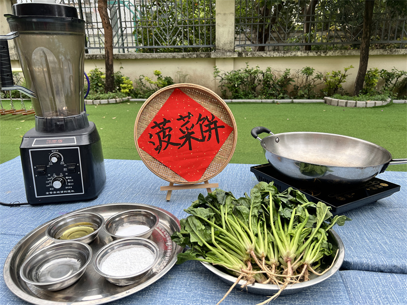 老师备好了新鲜翠绿的菠菜、